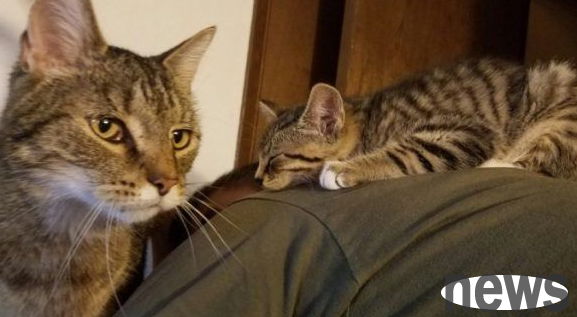 When they were going back home the next day, they really didn't worry about leaving the kitten alone in the mountains and forests, so they decided to take it home to keep it company with its cat brother Bob!