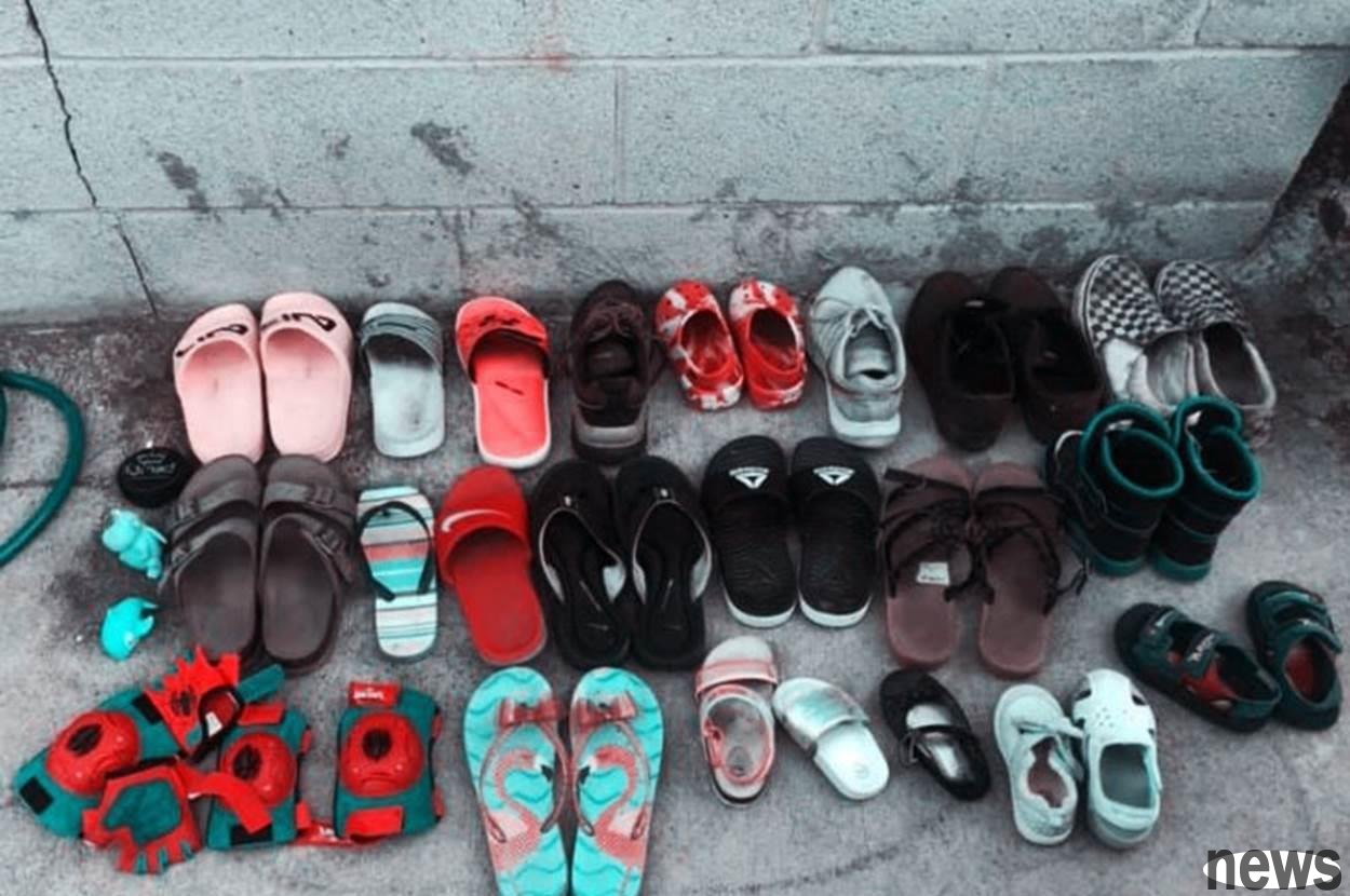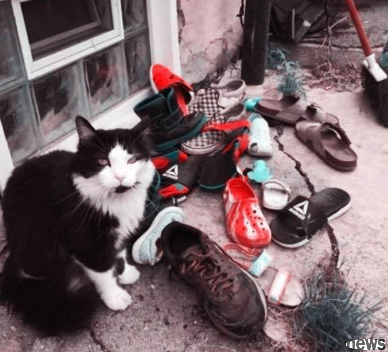 After a long day of work, the shoes that the neighbors lost were all stolen by the cat.