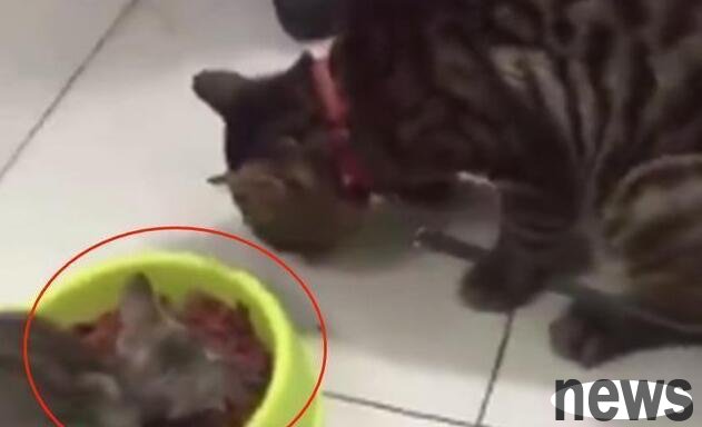 The cat from this netizen just gave birth to a kitten a few days ago and was a little weak. He carefully prepared a big meal for the cat every day. On this day, he prepared a sumptuous meal for the cat as usual. He put it in front of the cat and left, but at this moment something strange happened.