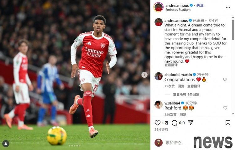 Early this morning, Arsenal defeated Brighton 2-0 in the League Cup. Gunners youngster Anus made his debut. After the game, he posted a message on Instagram to celebrate.