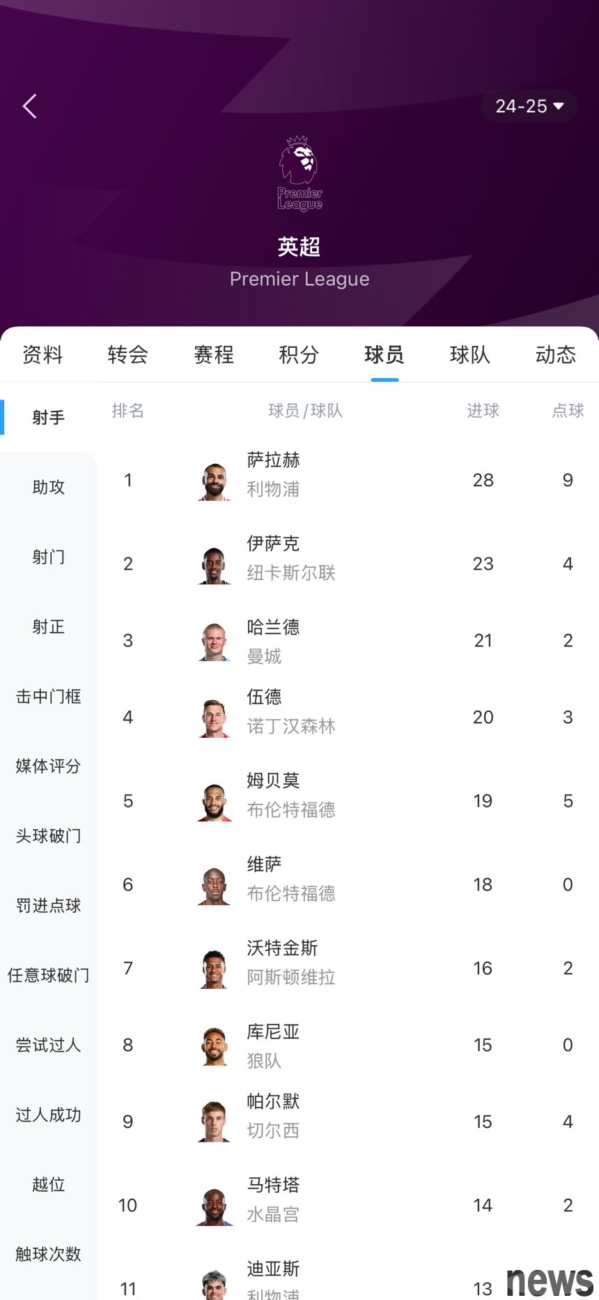 Salah ranked first with 28 goals (2 games left), leading Isaac (1 game left) 5 goals