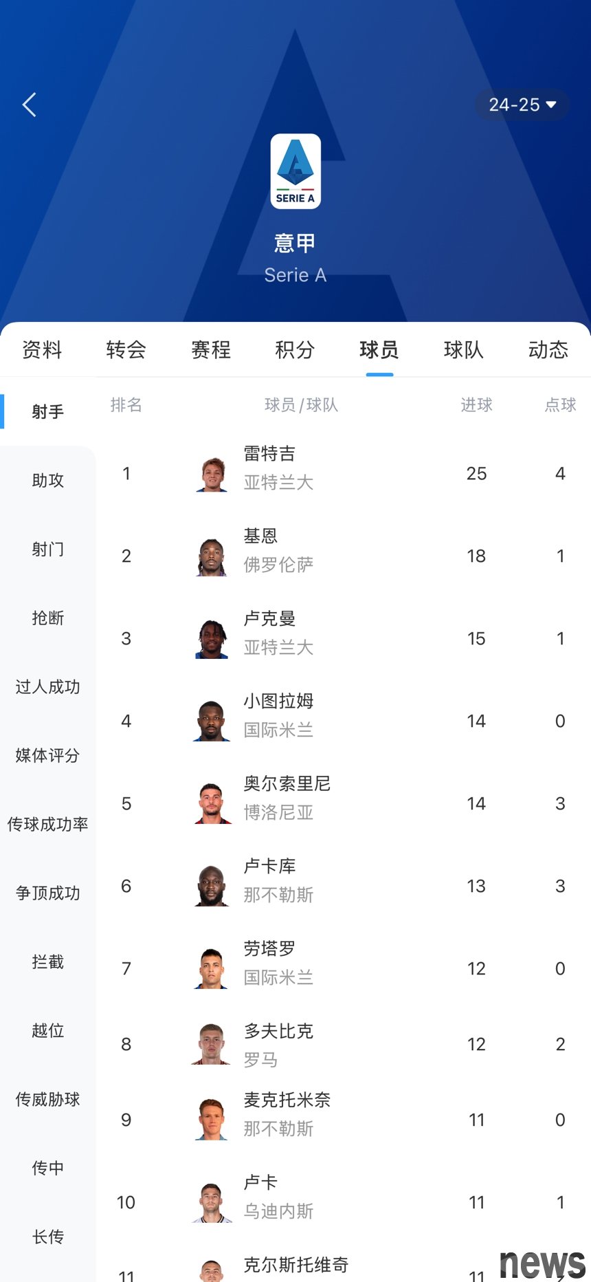 Retgi ranked 25 goals First, lead Keane Jr. 7 goals
